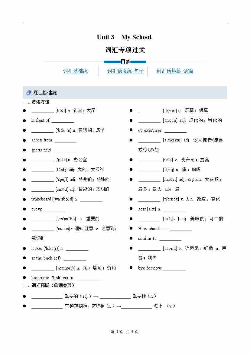 Unit 3 My School(重难词汇精练)(原卷版)