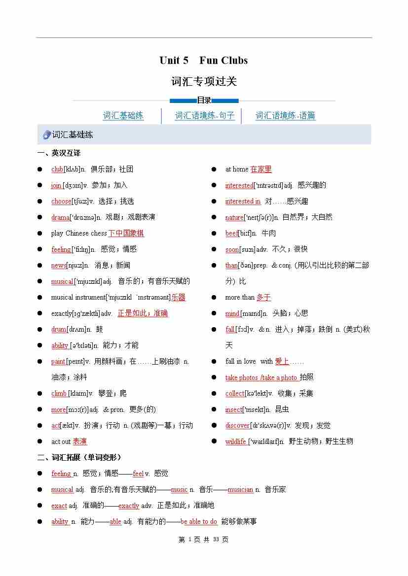 Unit 5 Fun Clubs(重难词汇精练)(解析版)