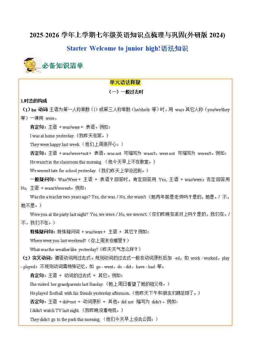 02.Starter Welcome to junior high!(语法知识)(学生版)