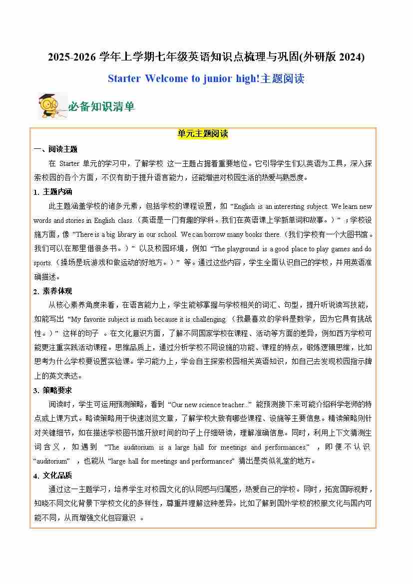 04.Starter Welcome to junior high! (主题阅读)(学生版)