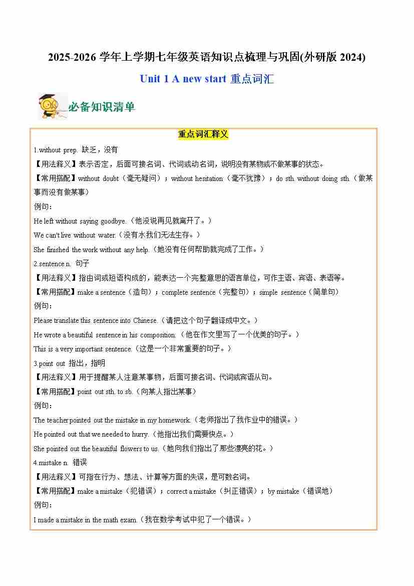 06.Unit 1 A new start(重点词汇)(学生版)
