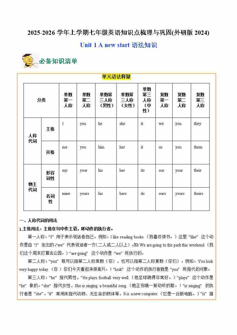 07.Unit 1 A new start(语法知识)(学生版)