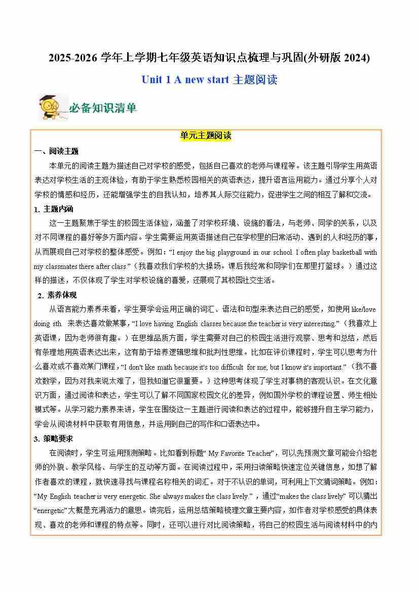 09.Unit 1 A new start (主题阅读)(教师版)