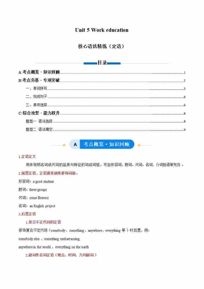 Unit 5 Work education 定语(单元核心语法精练)(解析版)