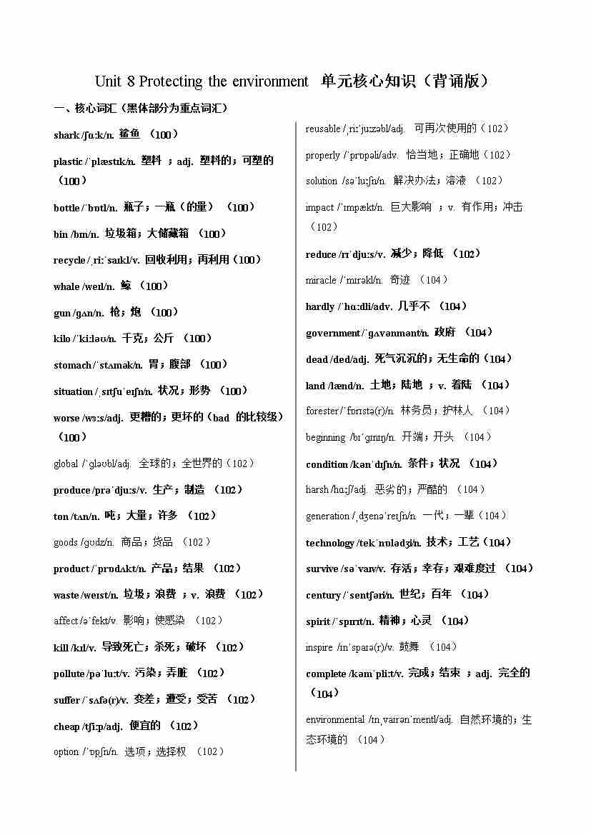 Unit 8 Protecting the environment (单元核心知识)(背诵版)