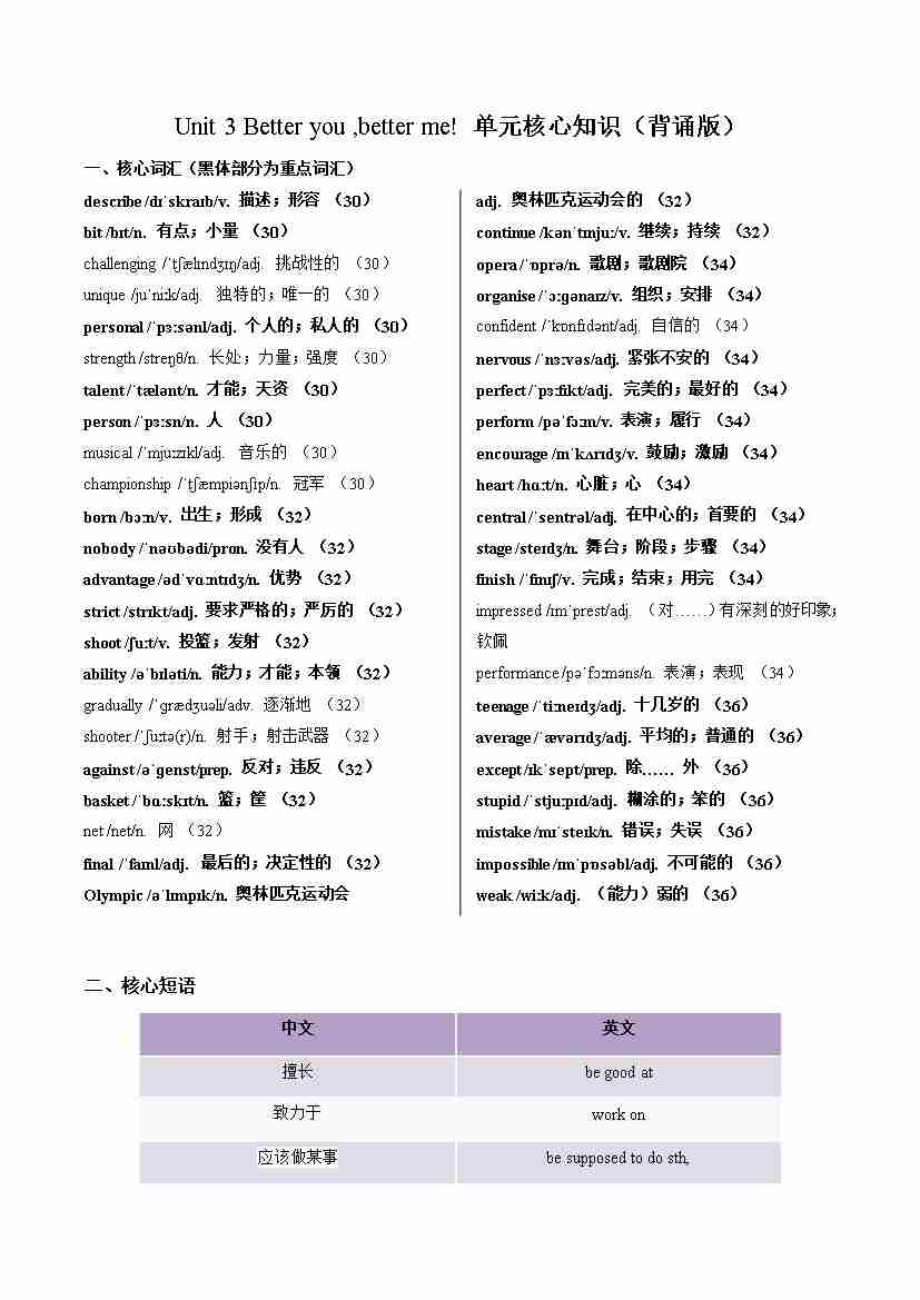 Unit 3 Better you better me (单元核心知识)(背诵版)