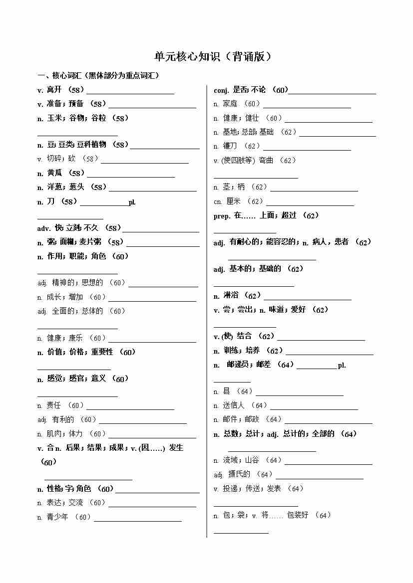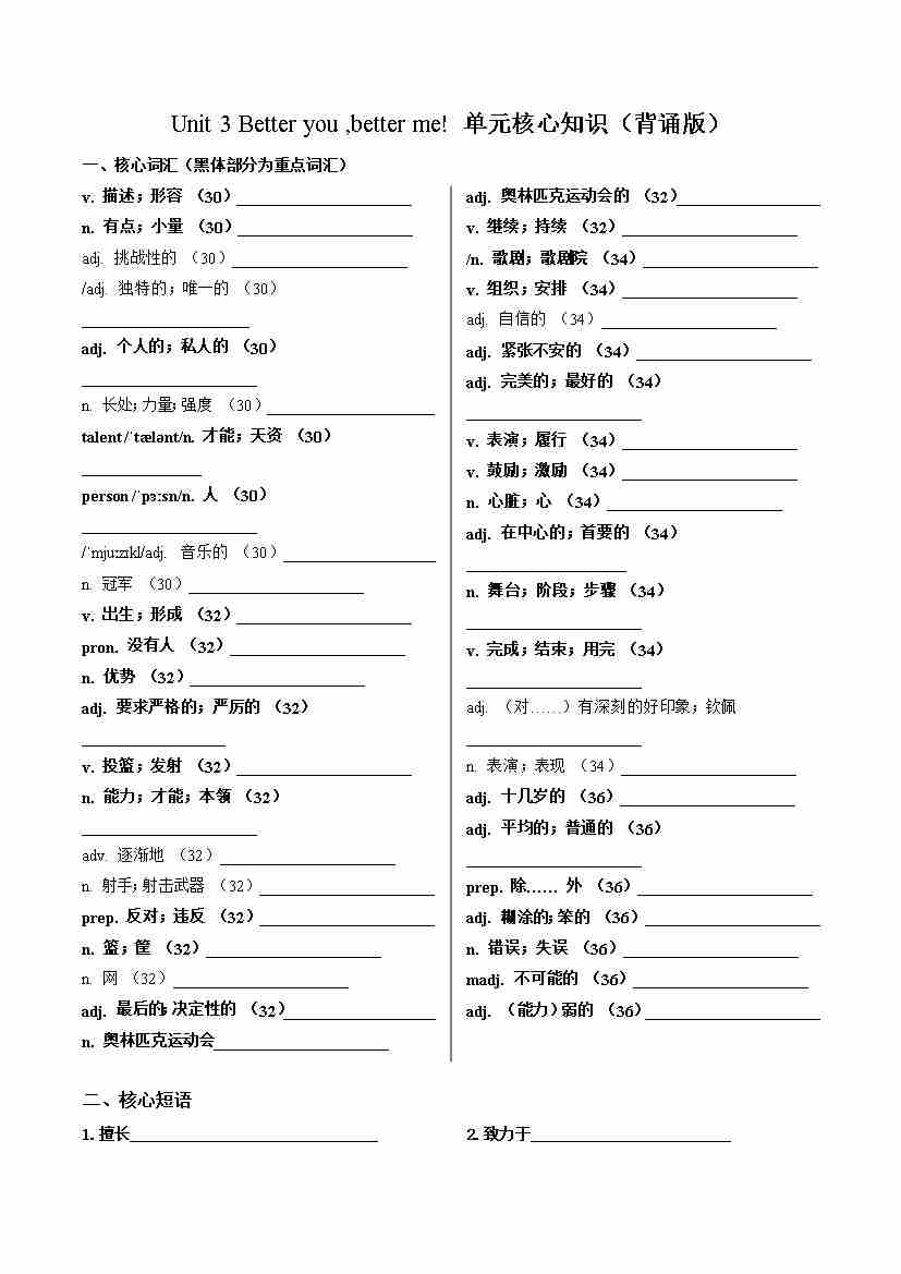 Unit 3 Better you better me (单元核心知识)(默写版)