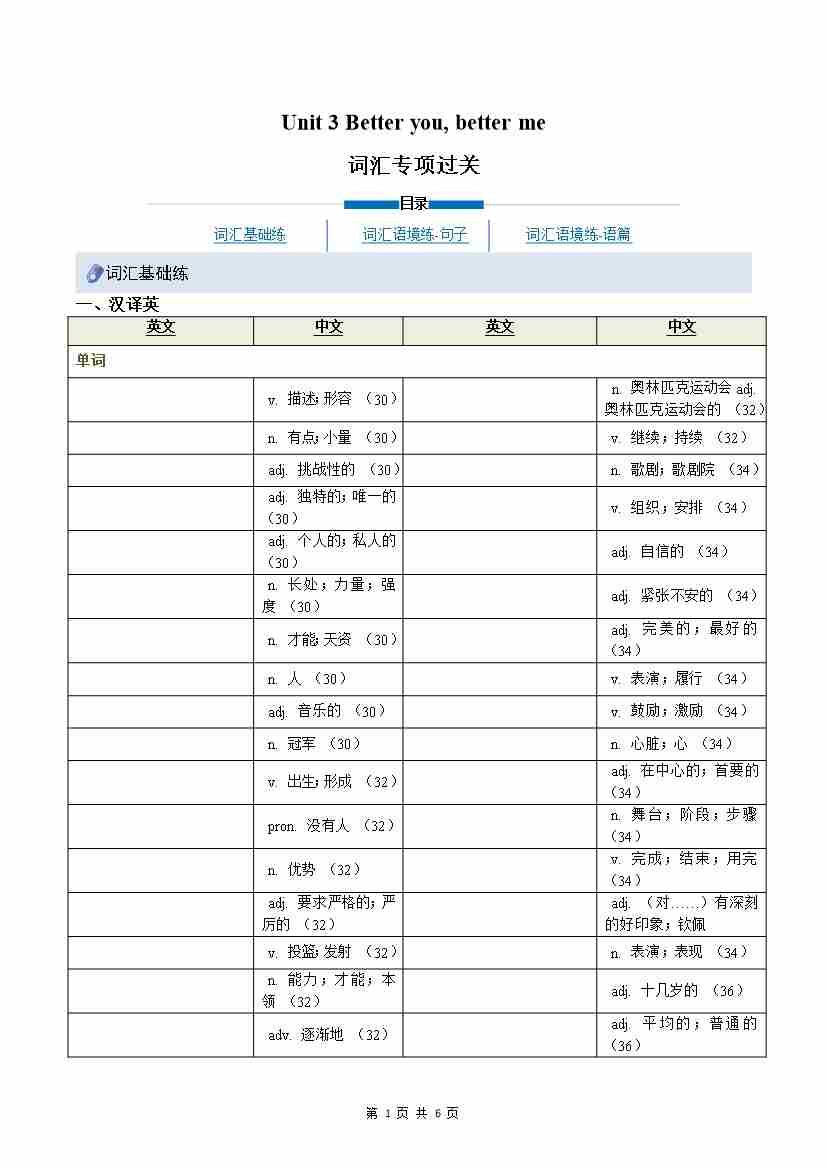 Unit 3 Better you, better me(重难词汇精炼)(原卷版)八上冀教
