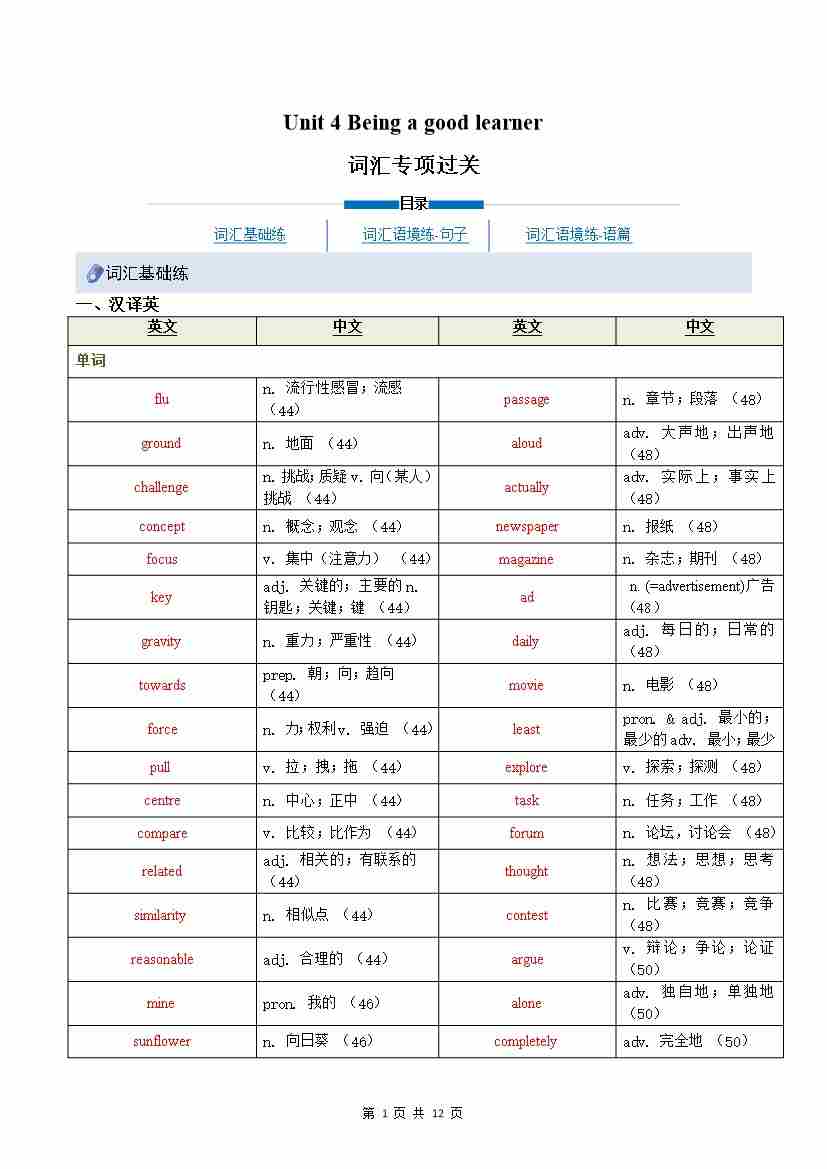 重难点词汇