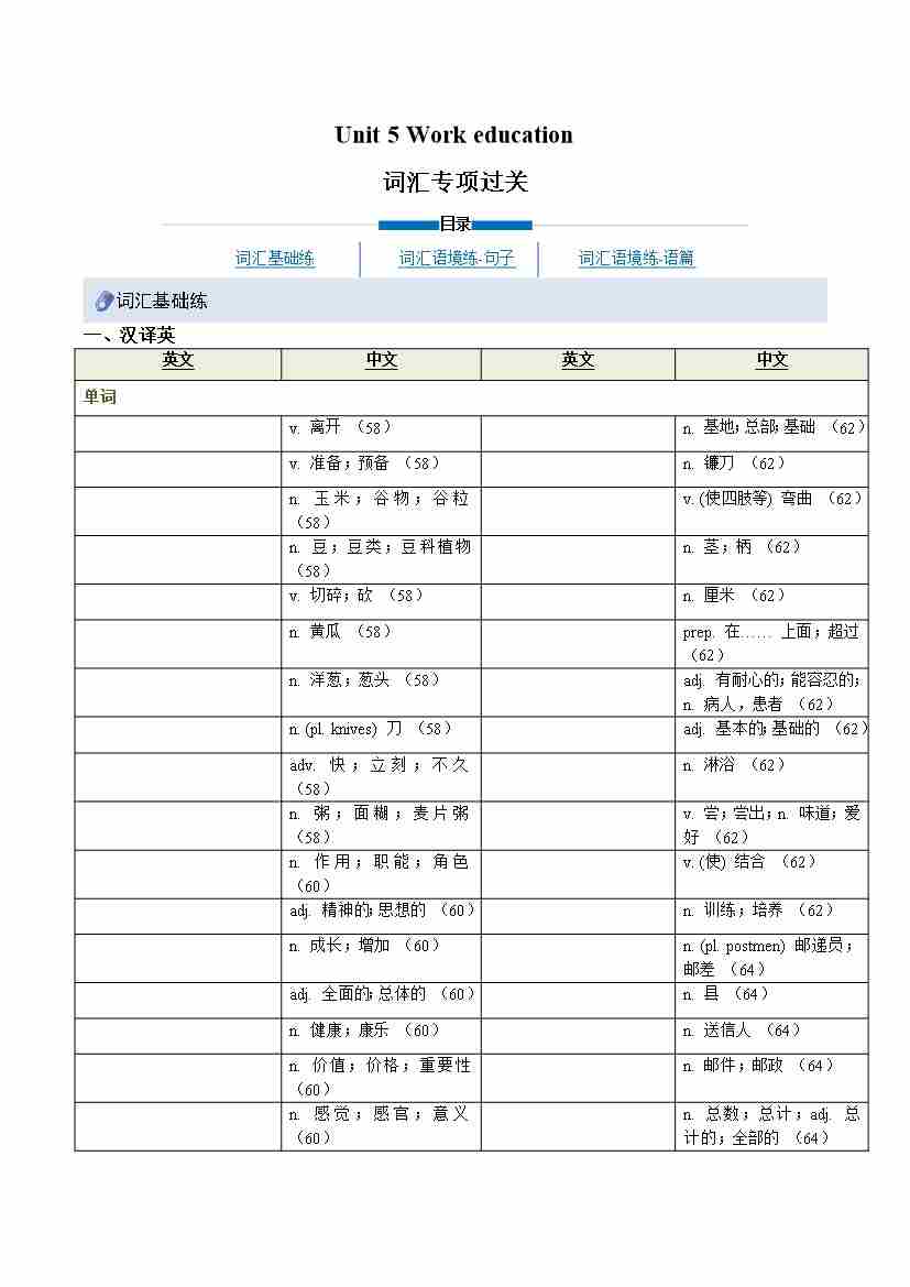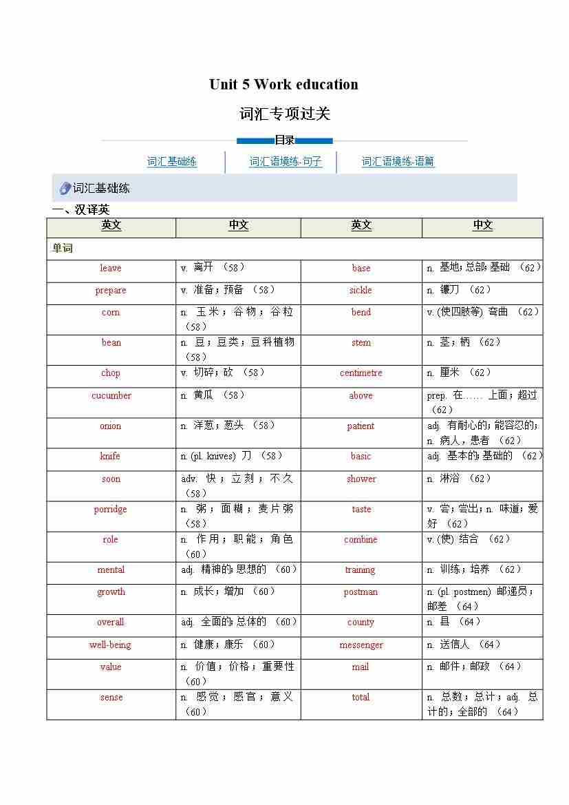 Unit 5 Work education(重难词汇精炼)(解析版)