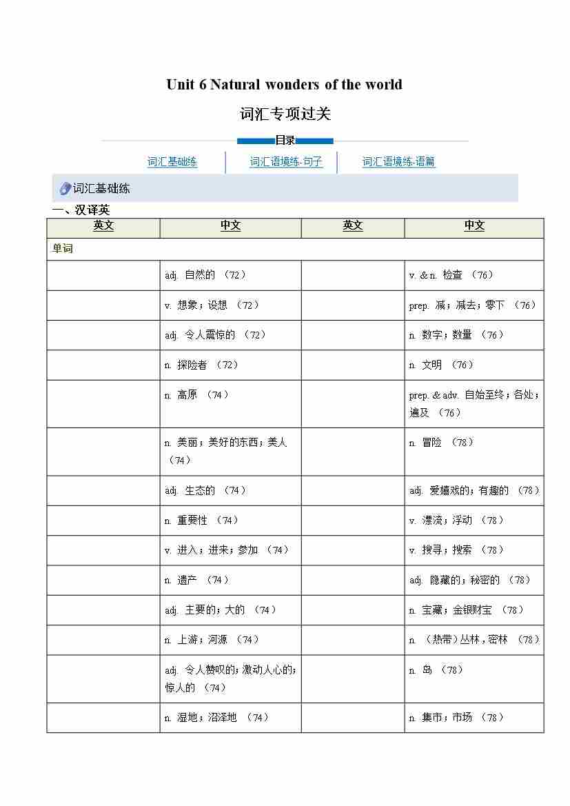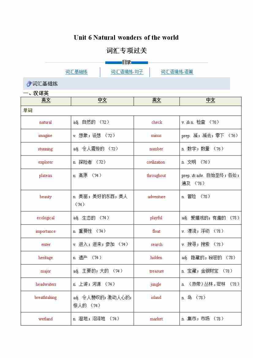 Unit 6 Natural wonders of the world(重难词汇精炼)(原卷版)