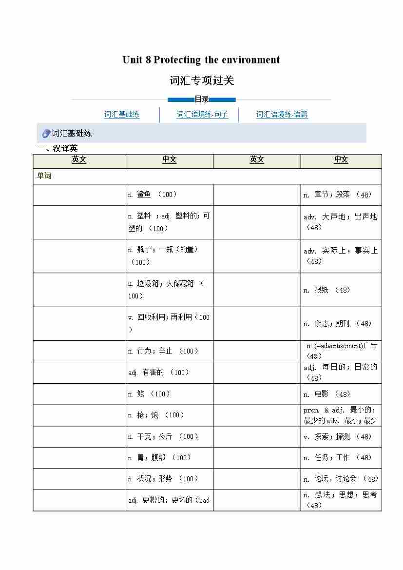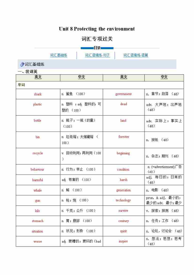 Unit 8 Protecting the environment (重难词汇精炼)(原卷版)