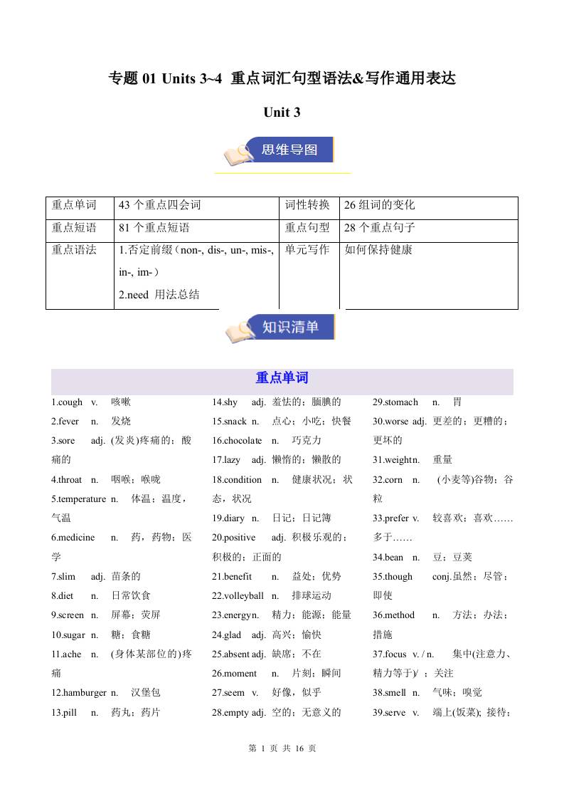 专题02 Units 3~4 重点词汇句型语法&写作通用表达(期末复习知识清单)(背诵版)99