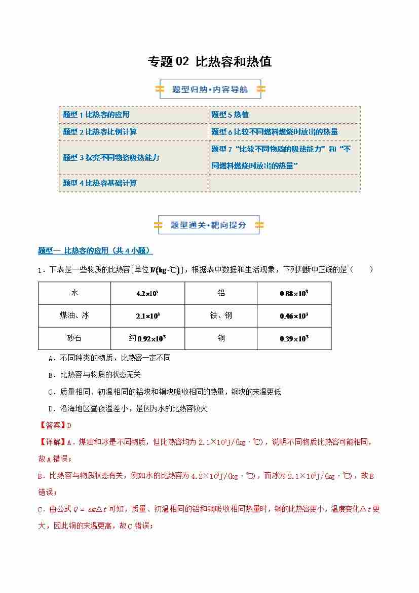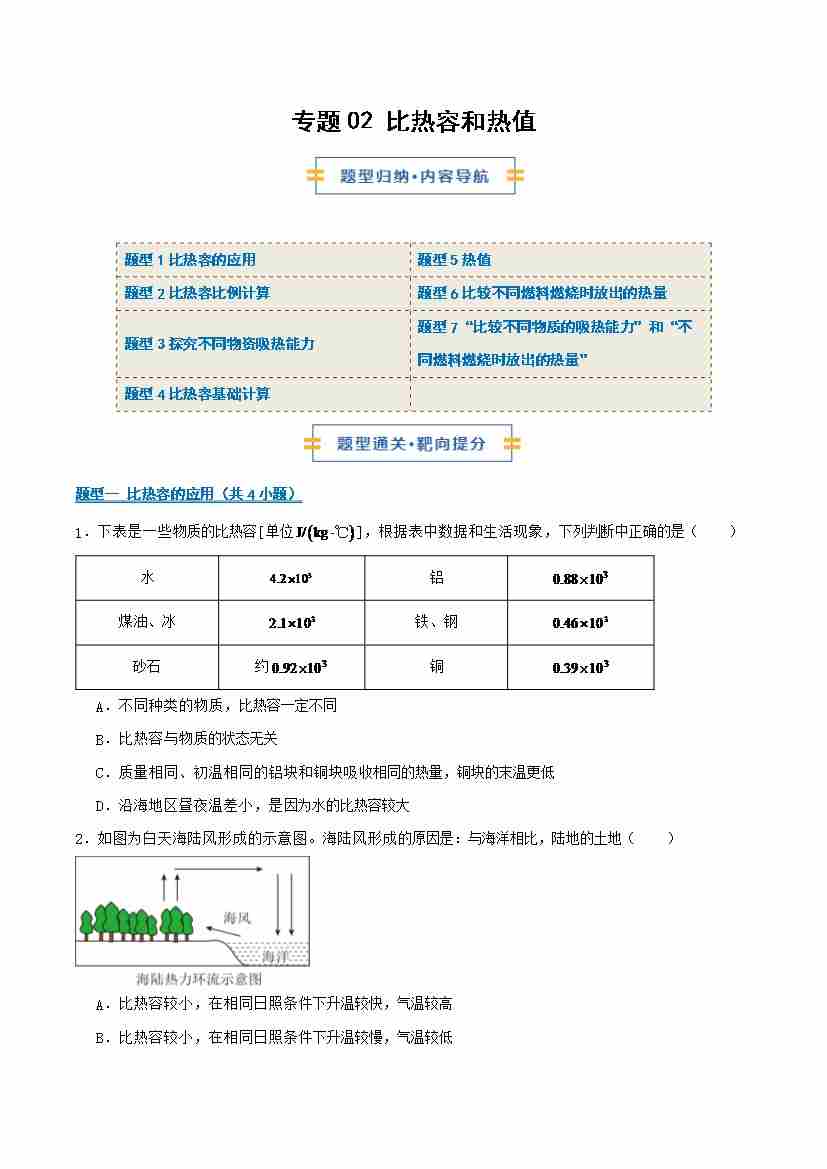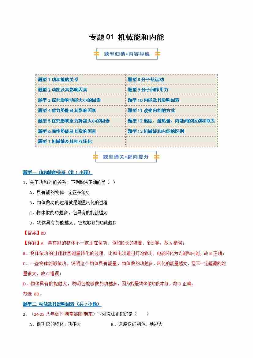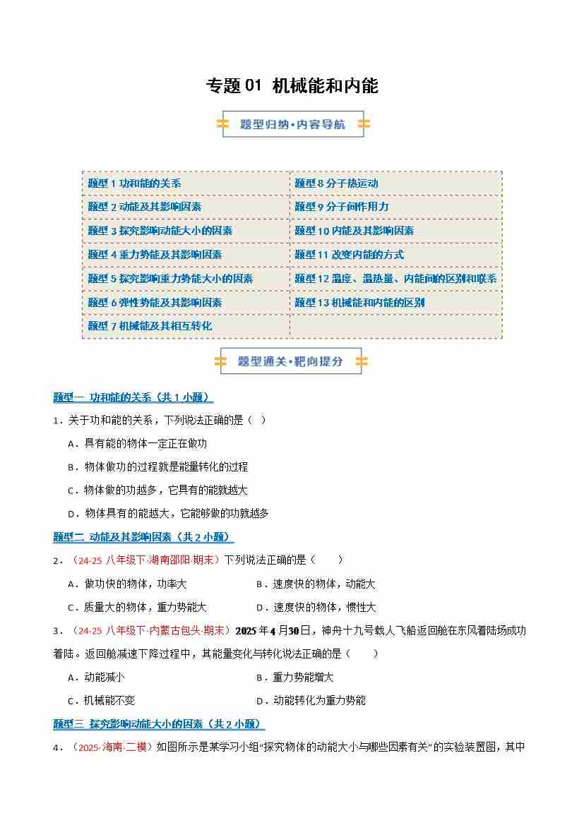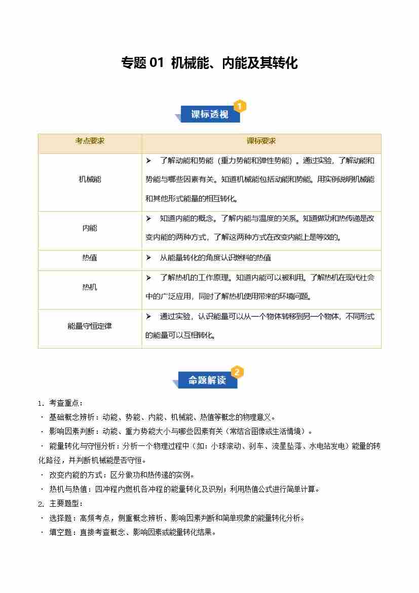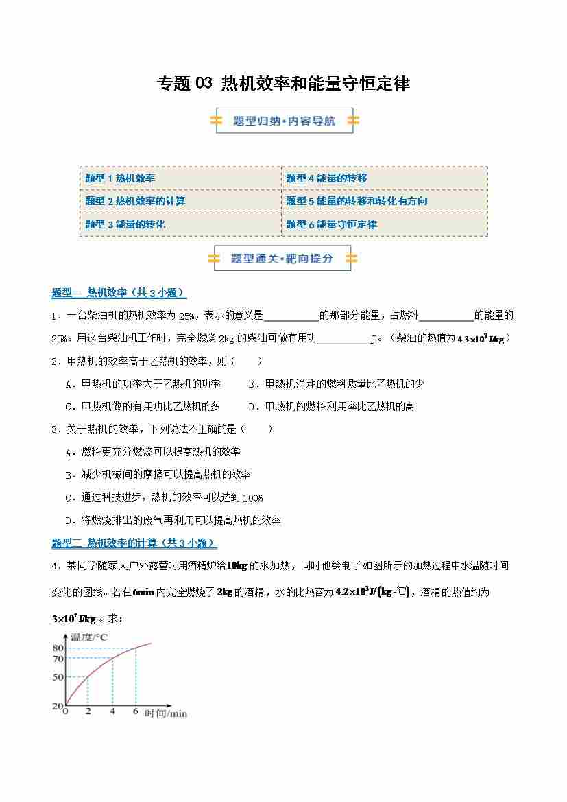 专题03 热机效率和能量守恒定律(期中专项训练)(学生版)