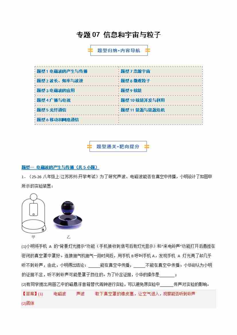 专题7 信息、宇宙与粒子(期末专项训练)(解析版)