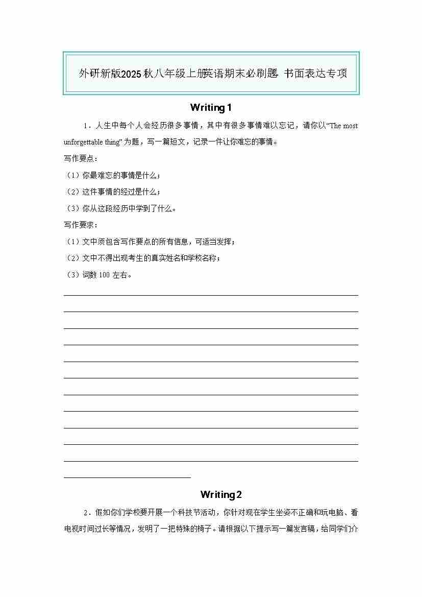 25秋八上外研英语 书面表达专项(原卷版)