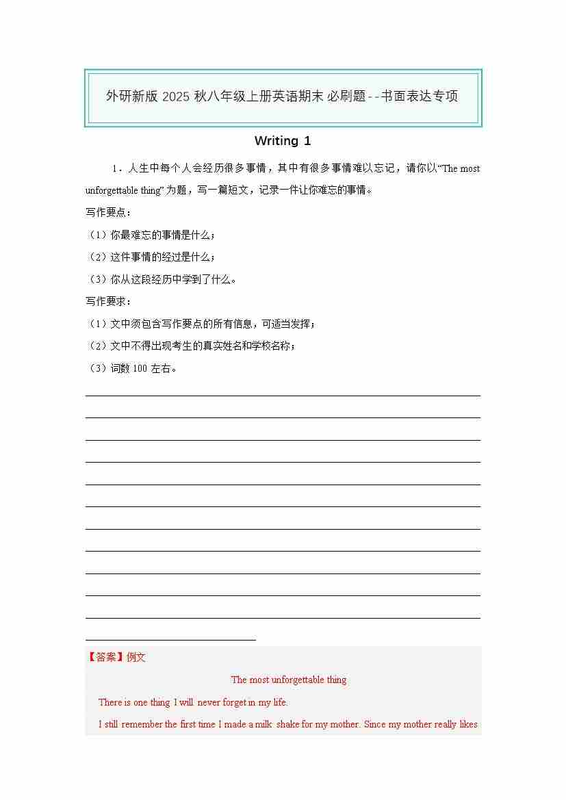 25秋八上外研英语 书面表达专项(解析版)