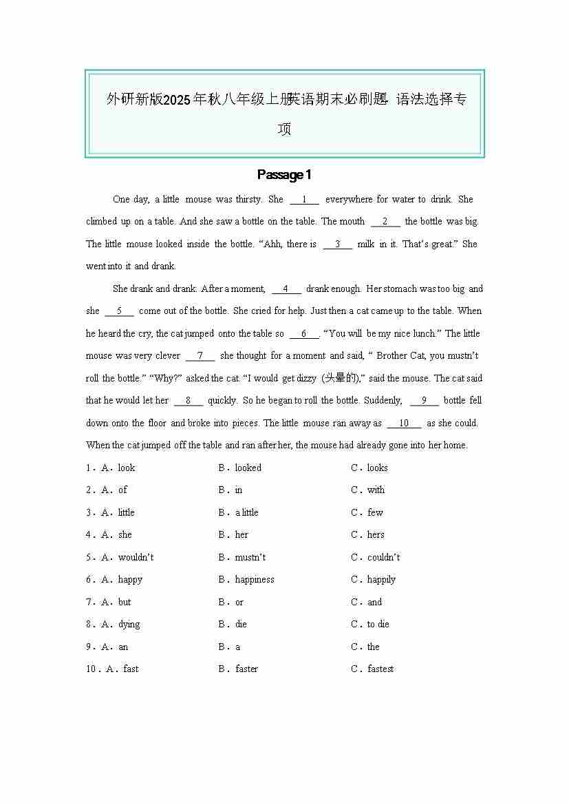 25秋八上外研英语 语法选择专项(原卷版)