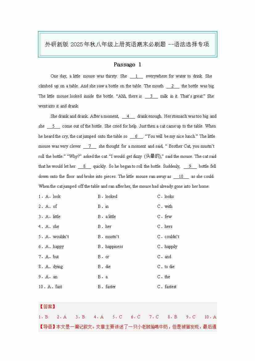 25秋八上外研英语 语法选择专项(解析版)