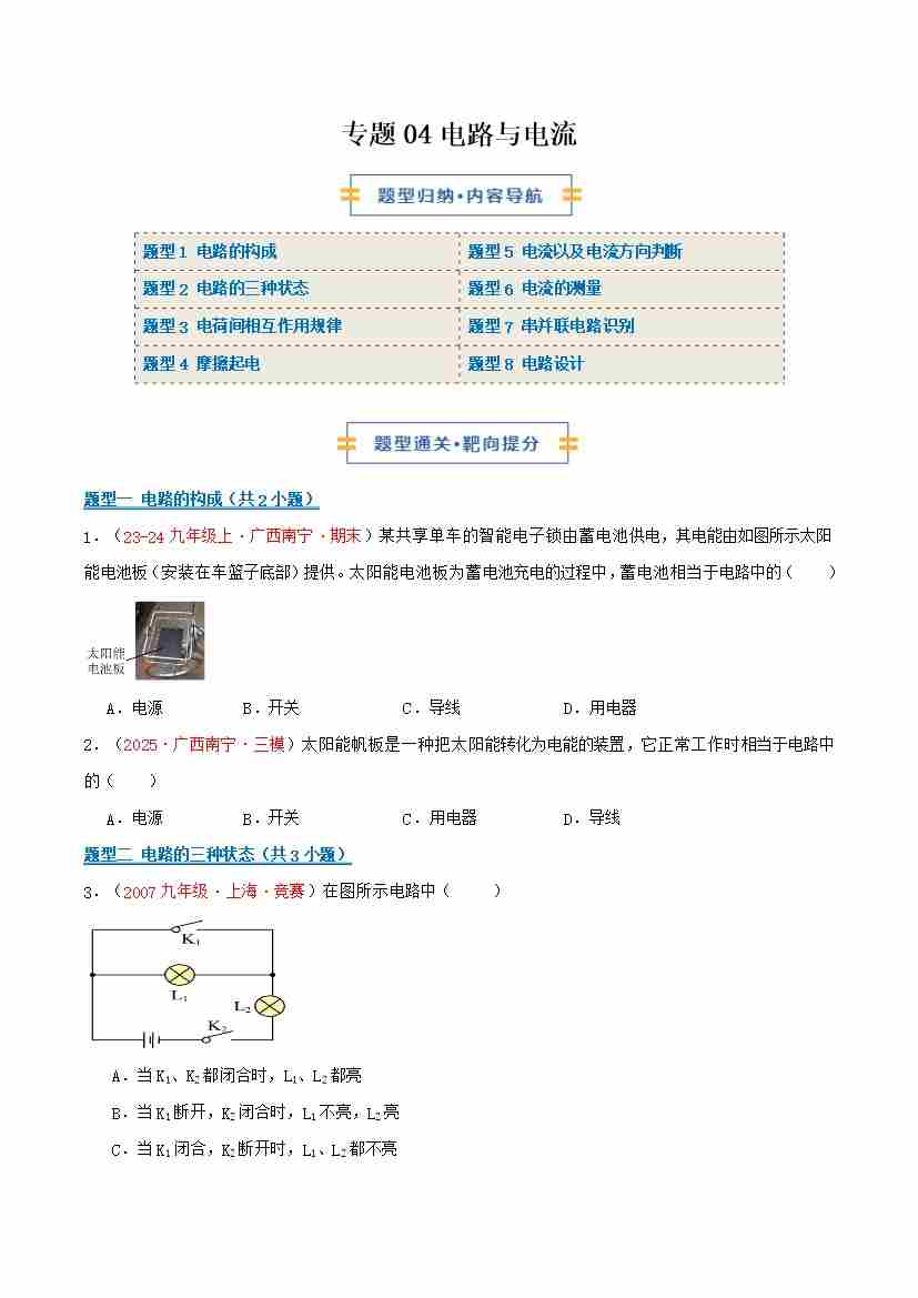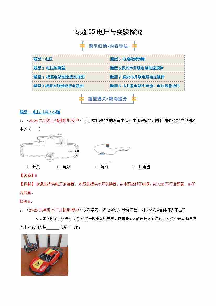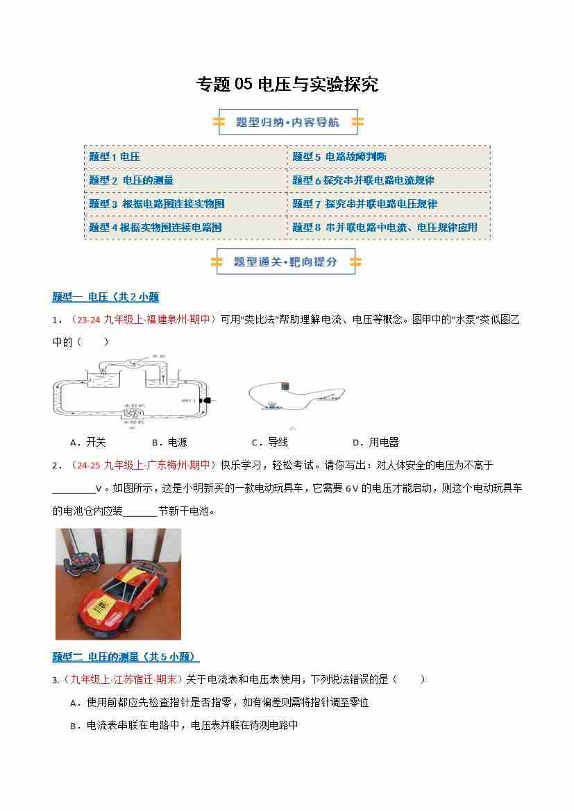 专题05电压与实验探究 (期中专项训练)(学生版)