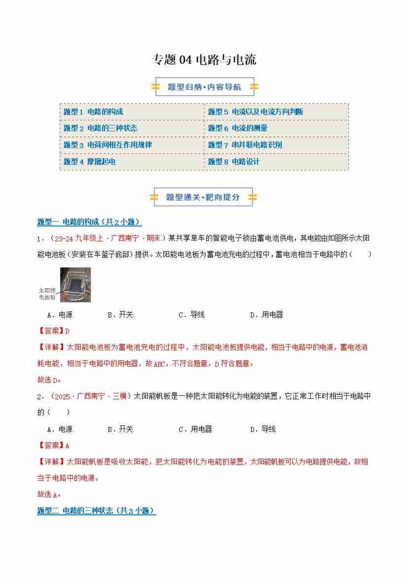 专题05电压与实验探究 (期中专项训练)(教师版)