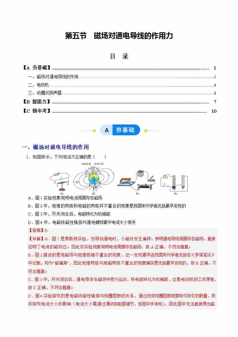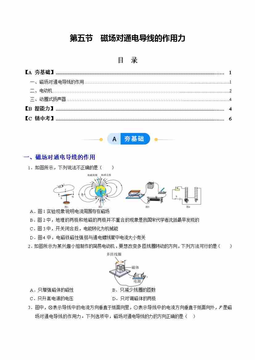 第十四章第五节 磁场对通电导线的作用力(分层作业)(原卷版)