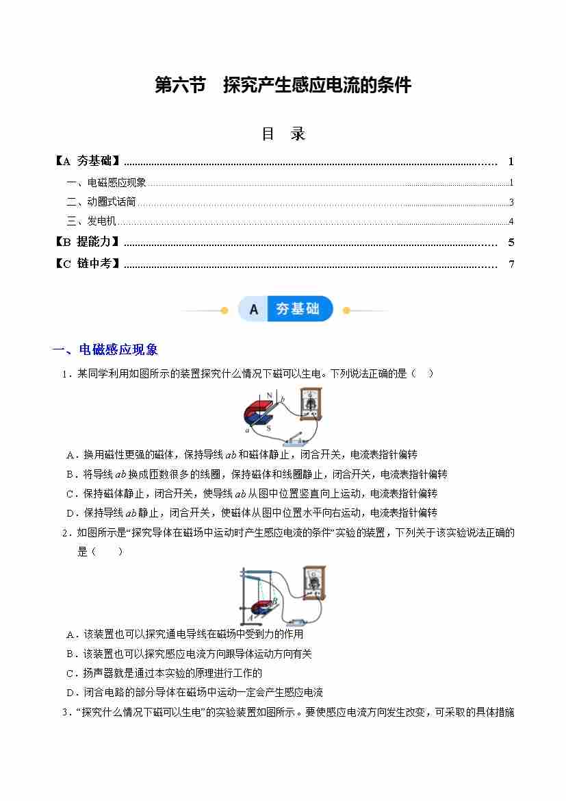 第十四章第六节 探究产生感应电流的条件(分层作业)(原卷版)
