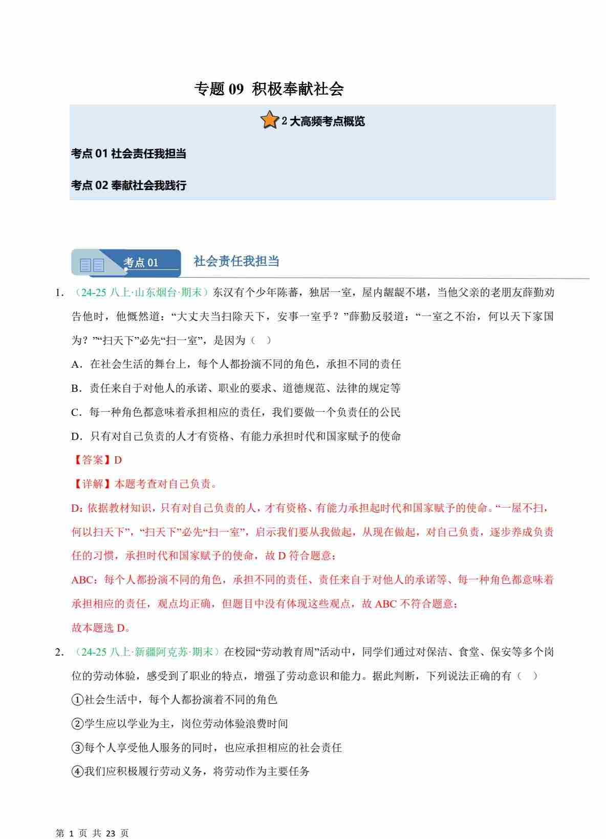 专题09 积极奉献社会(期末真题汇编,统编版)(解析版)