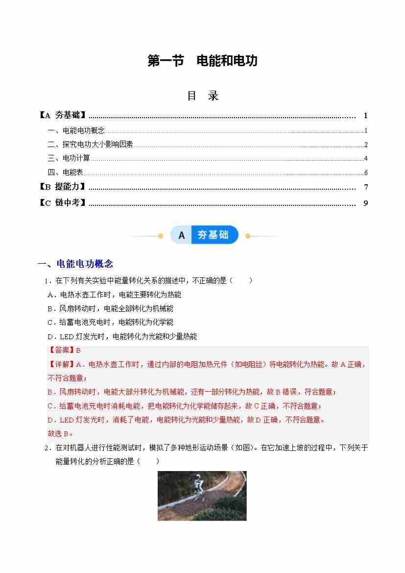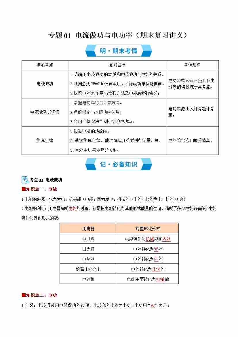 专题01 电流做功与电功率(期末复习讲义)原卷版