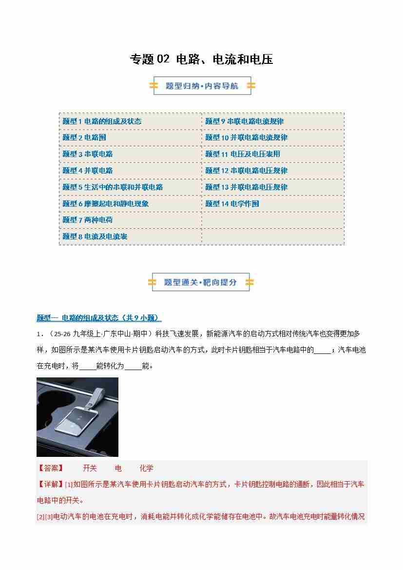 专题02 电路、电流和电压(期末专项训练)(解析版)