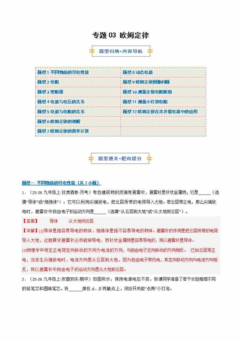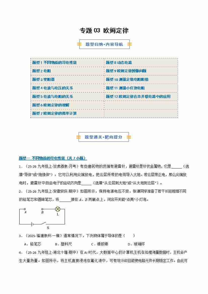 专题03 欧姆定律(期末专项训练)(原卷版)