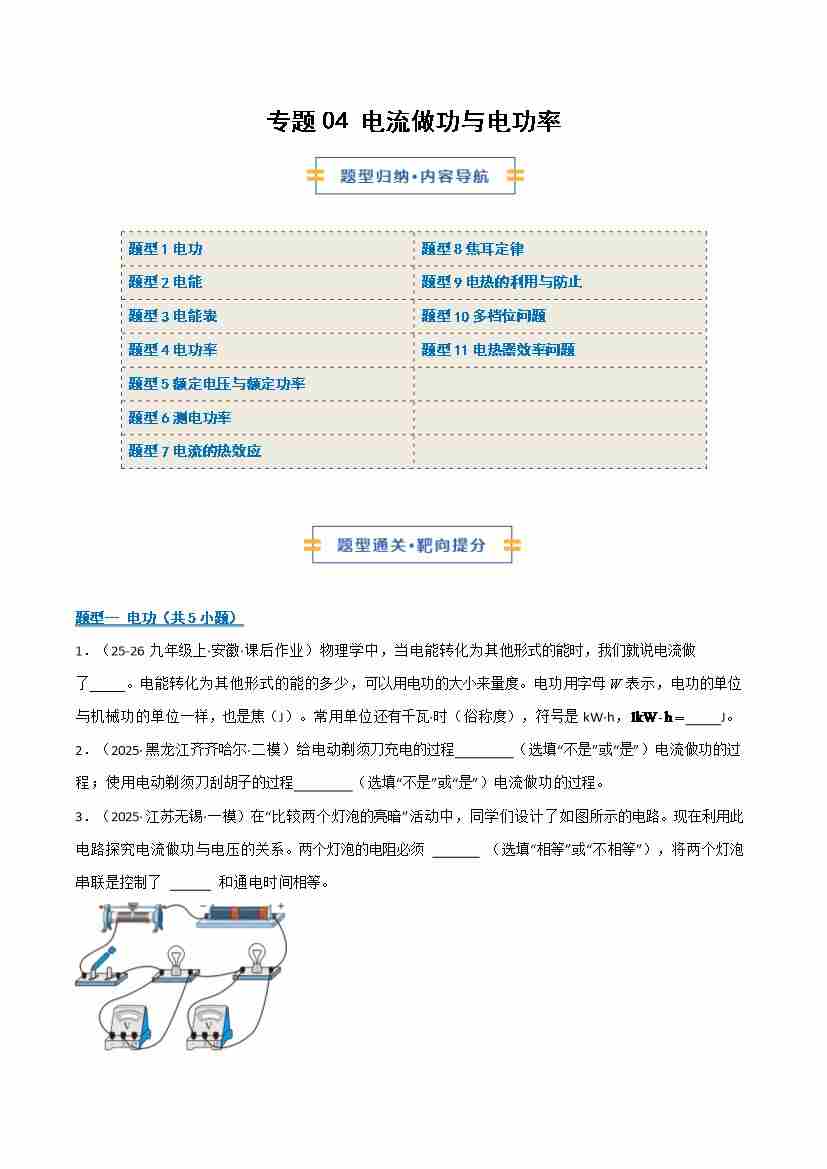 专题04 电流做功与电功率(期末专项训练)(原卷版)