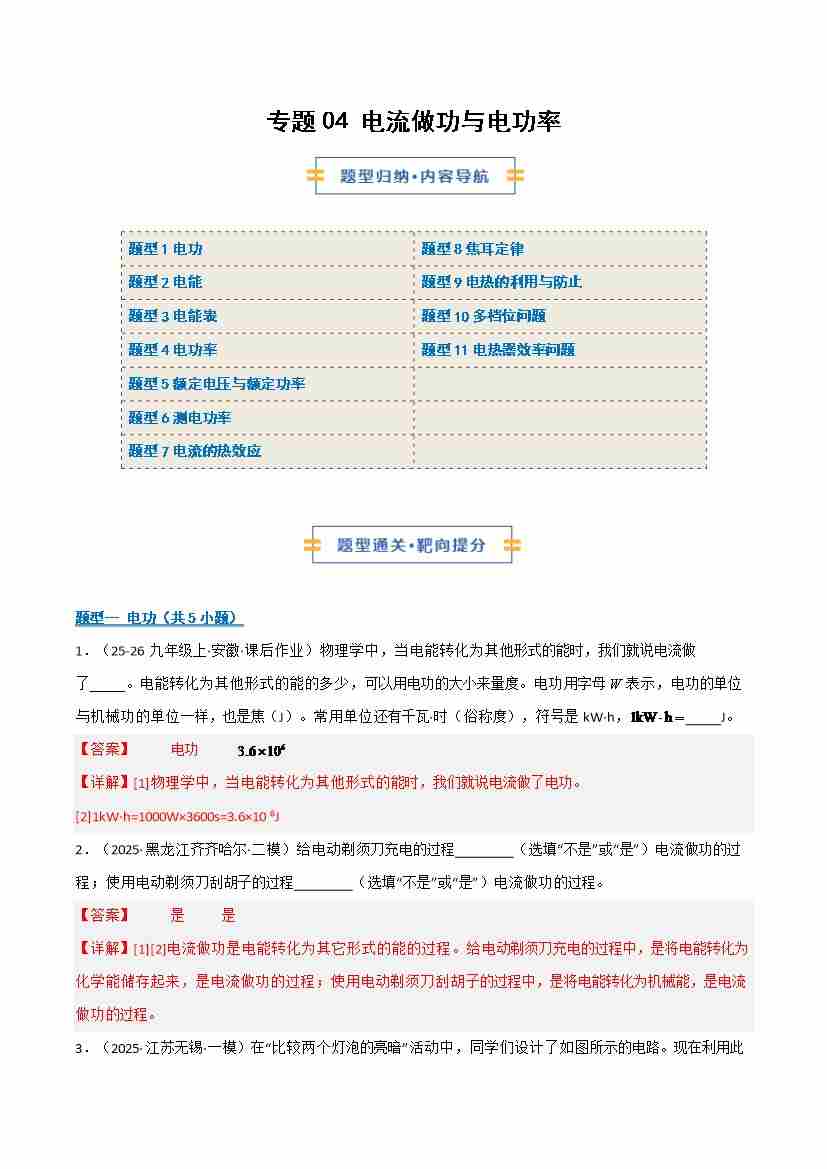 专题01 电流做功与电功率(期末复习讲义)解析版
