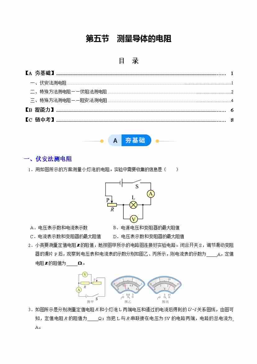 第十二章第五节 测量导体的电阻(分层作业)(原卷版)