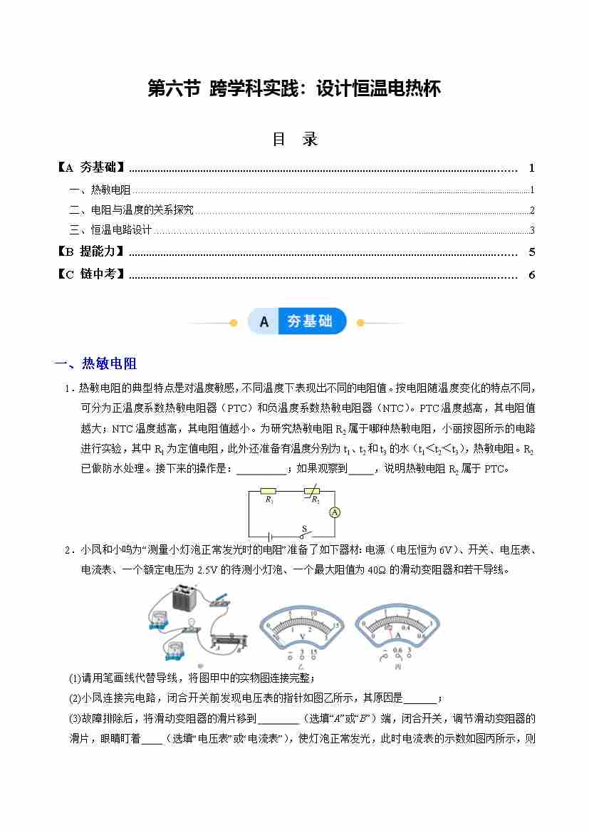 第十二章第六节 跨学科实践:设计恒温电热杯(分层作业)(原卷版)