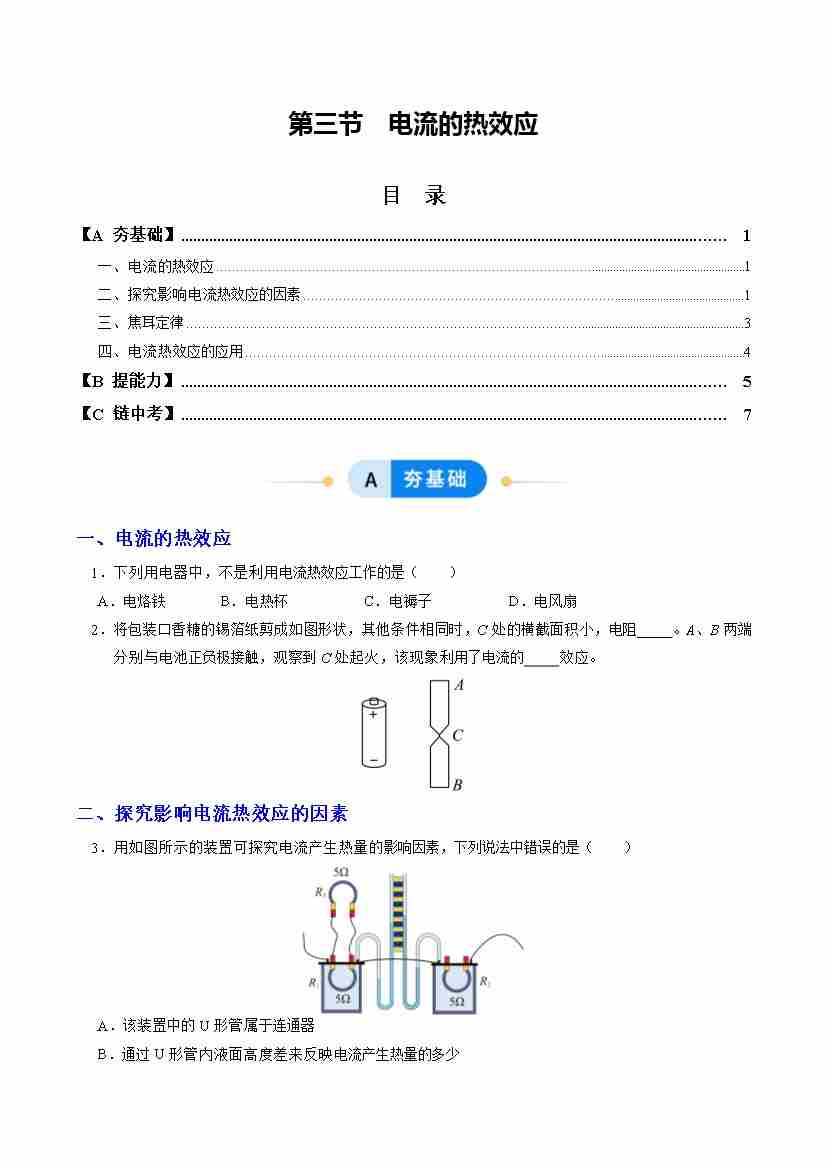 第十三章第三节 电流的热效应(分层作业)(原卷版)