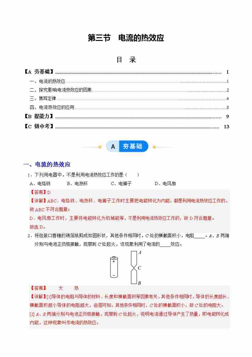 第十三章第三节 电流的热效应(分层作业)(解析版)