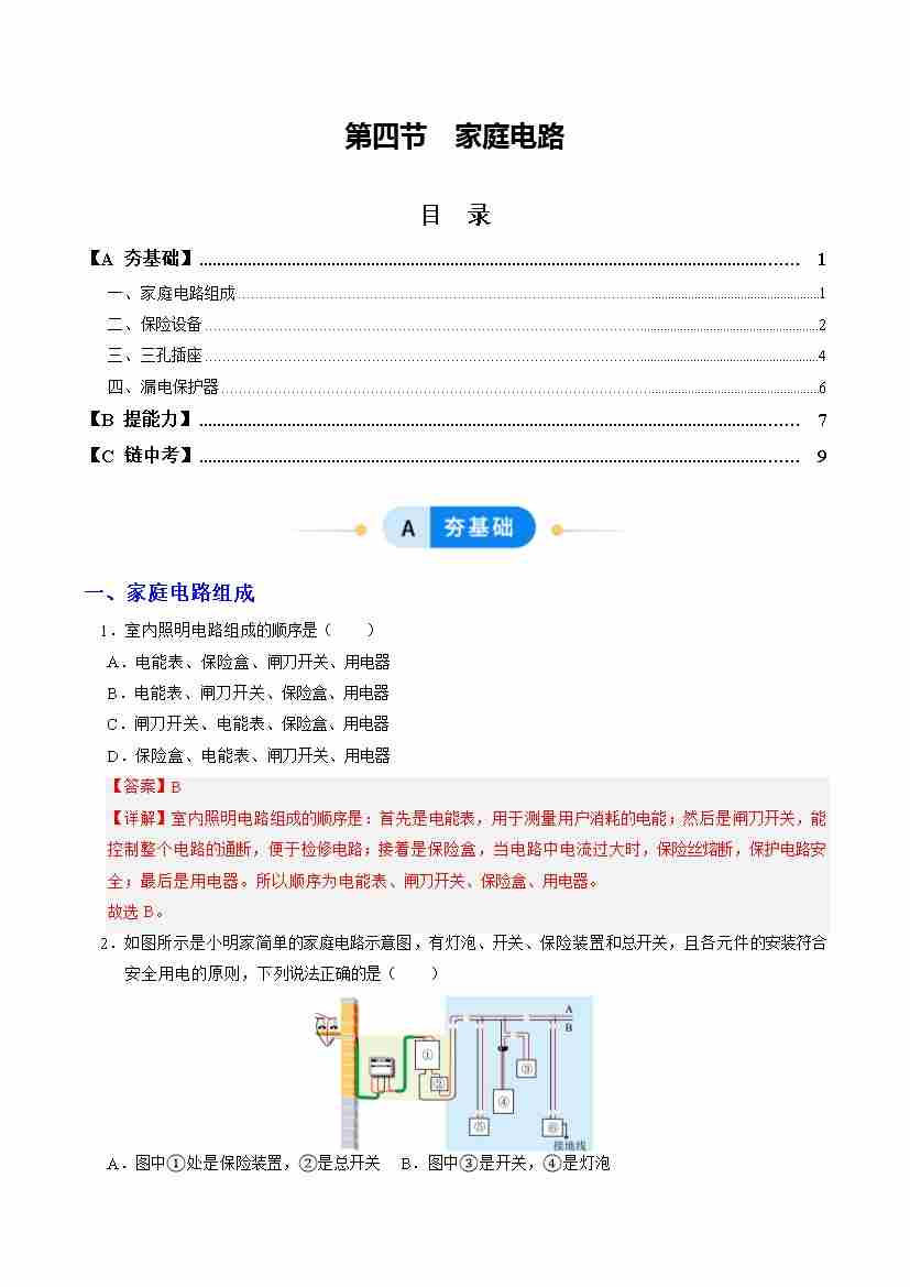 第十三章第四节 家庭电路(分层作业)(解析版)