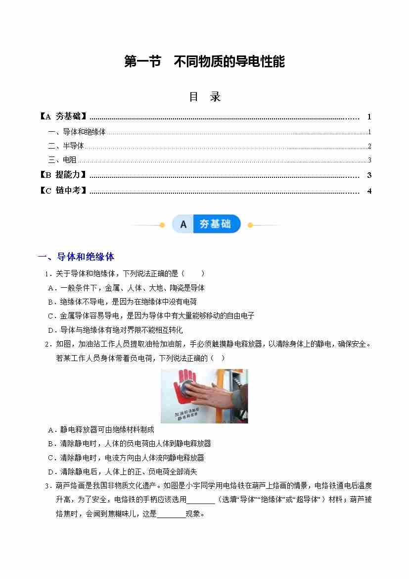第十二章第一节 不同物质的导电性能(分层作业)(原卷版)