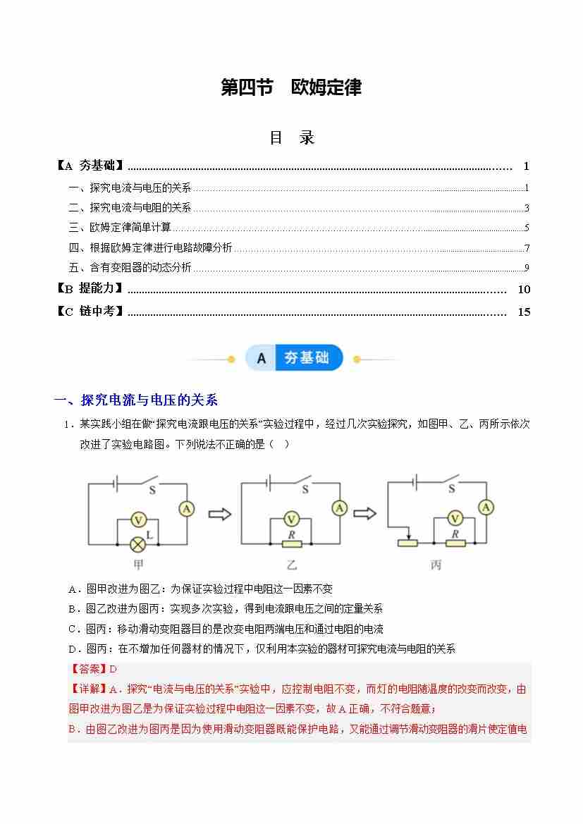 第十二章第四节 欧姆定律(分层作业)(解析版)
