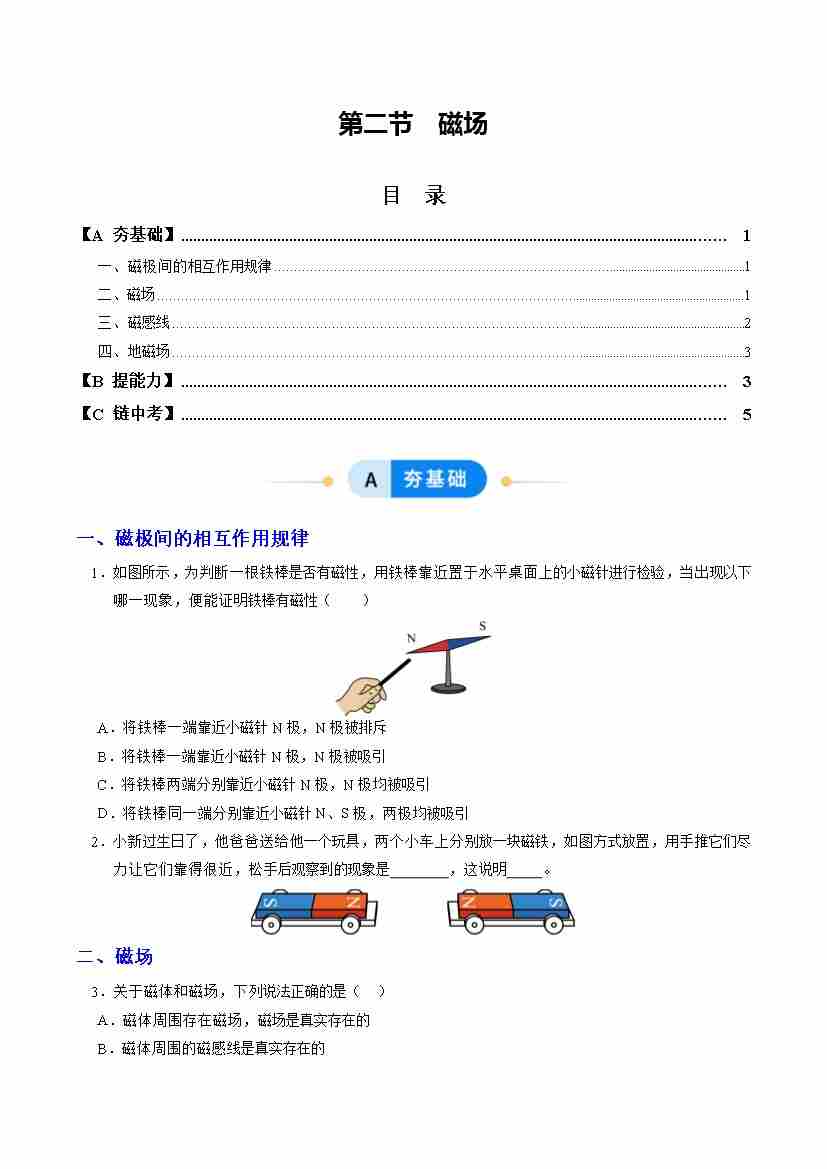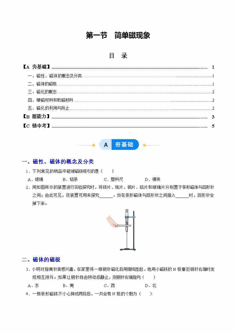 第十四章第一节 简单磁现象(分层作业)(原卷版)