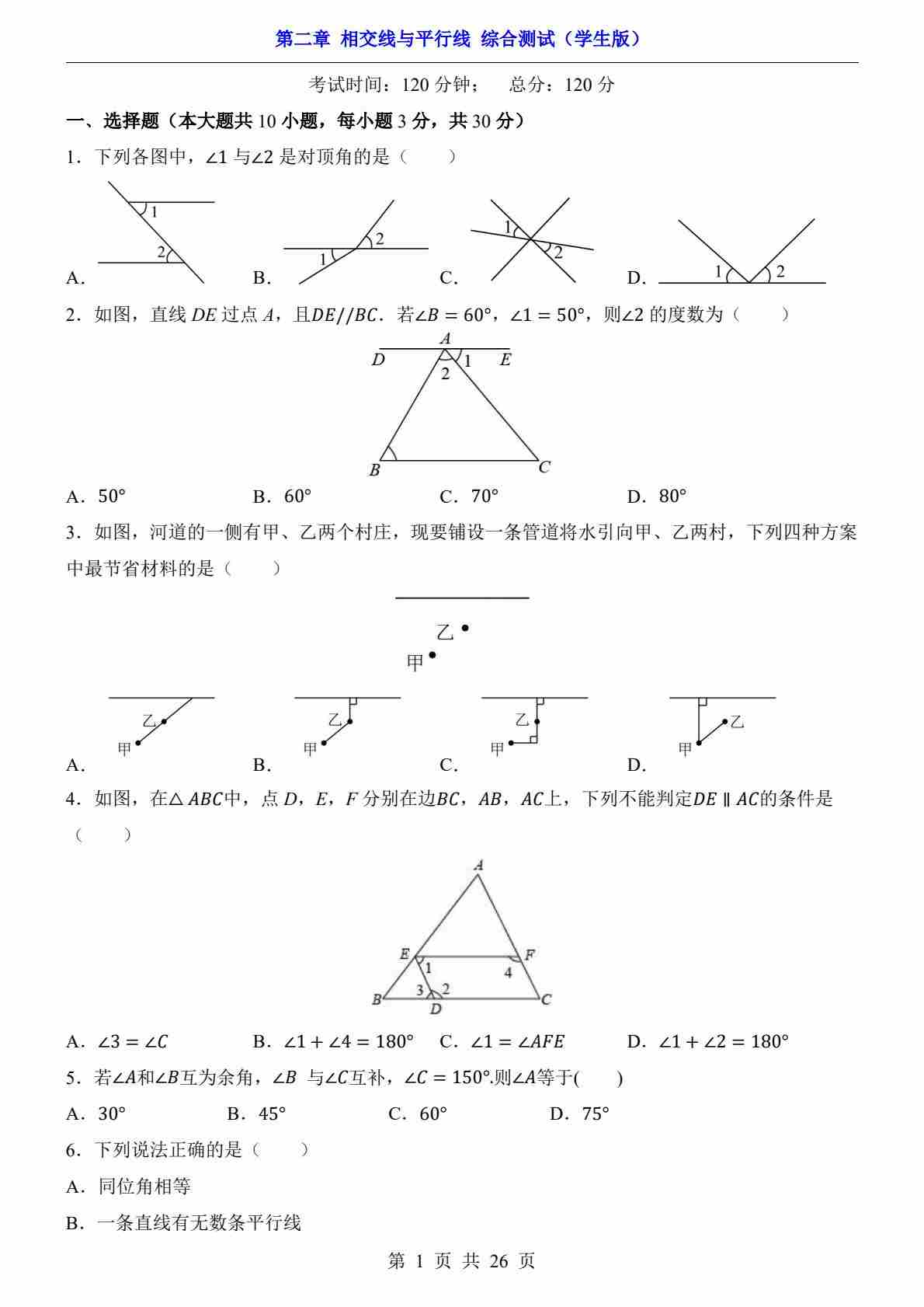 第2章 相交线与平行线(综合测试)