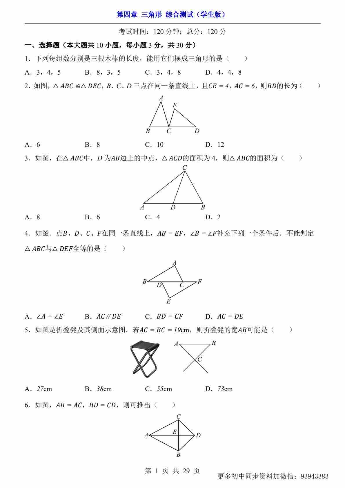 第4章 三角形(综合测试)
