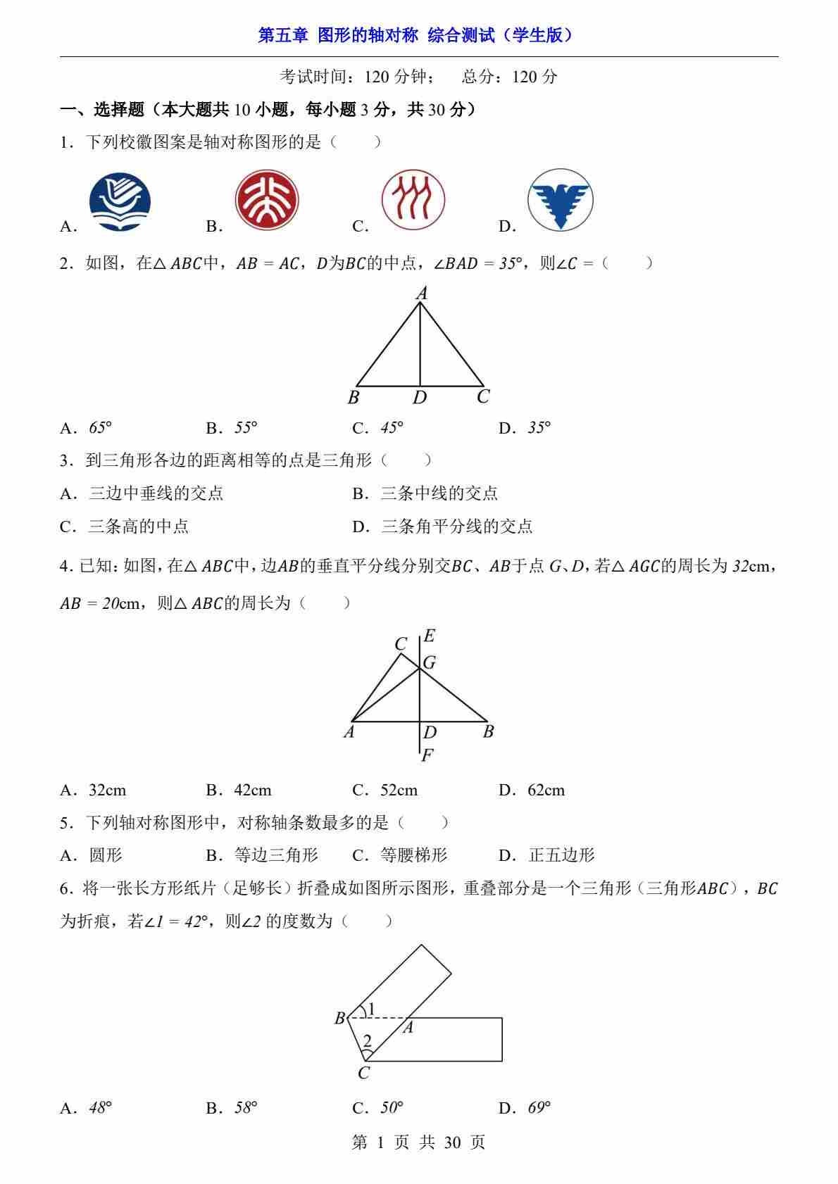 第5章 图形的轴对称(综合测试)
