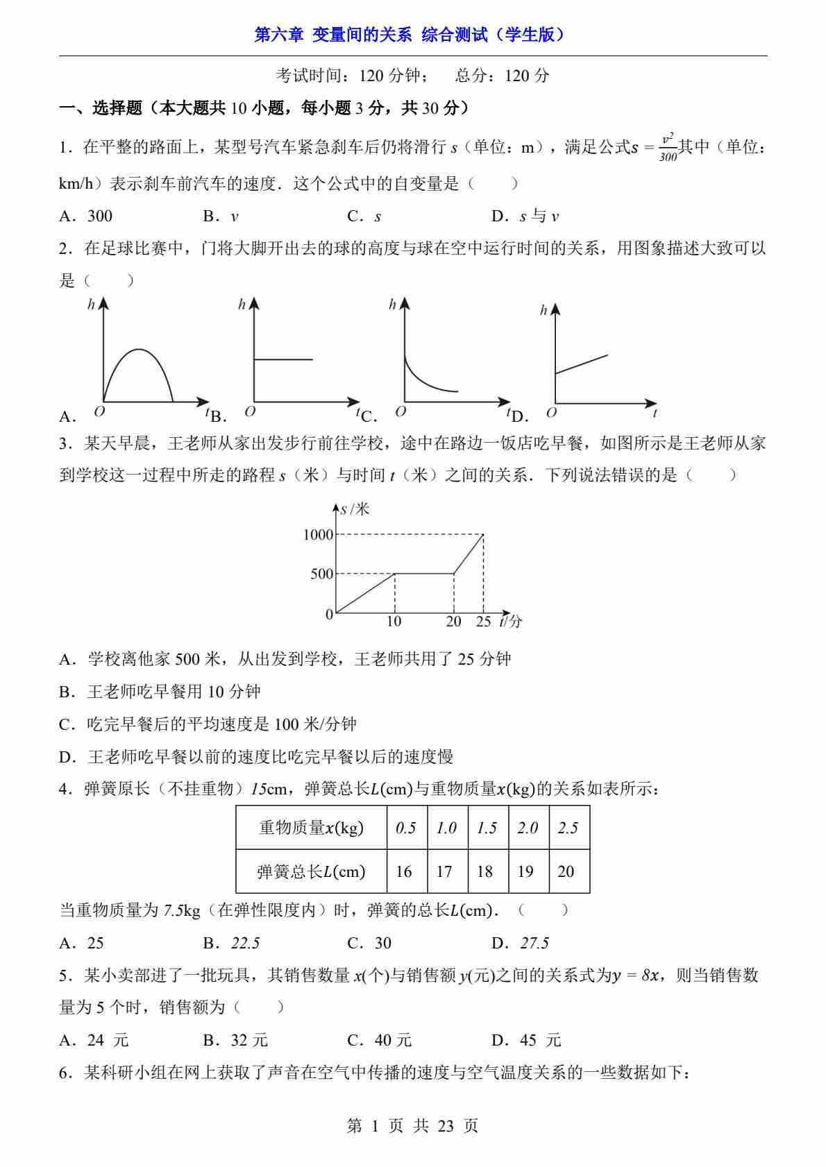 第6章 变量间的关系(综合测试)