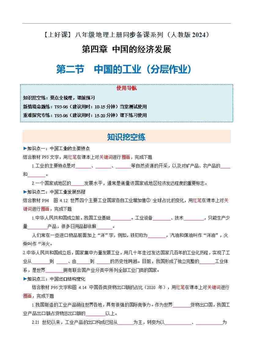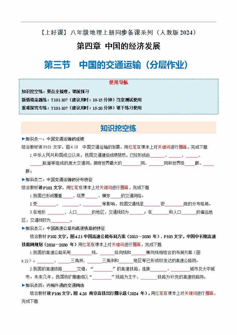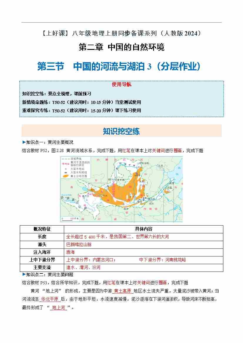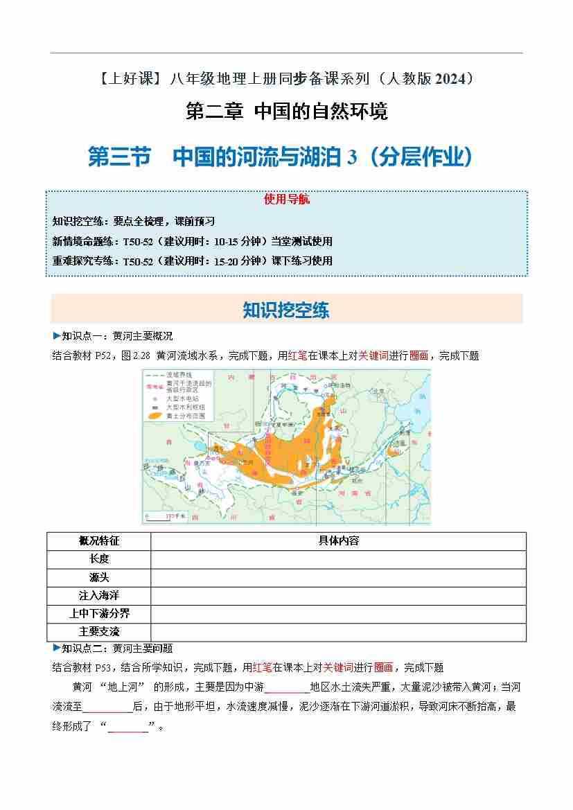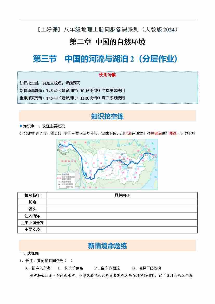 中国的河流与湖泊第3课时(分层作业)(原卷版)555
