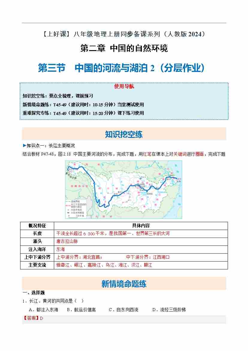中国的河流与湖泊第2课时(分层作业)(解析版)222