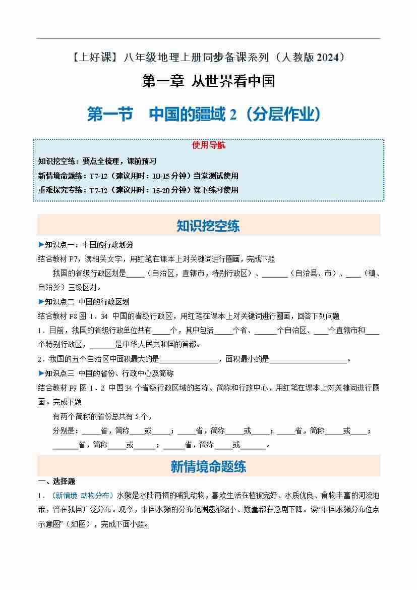 精品解析:2024-2025学年人教版英语七年级下册第一次月考试卷(原卷版)