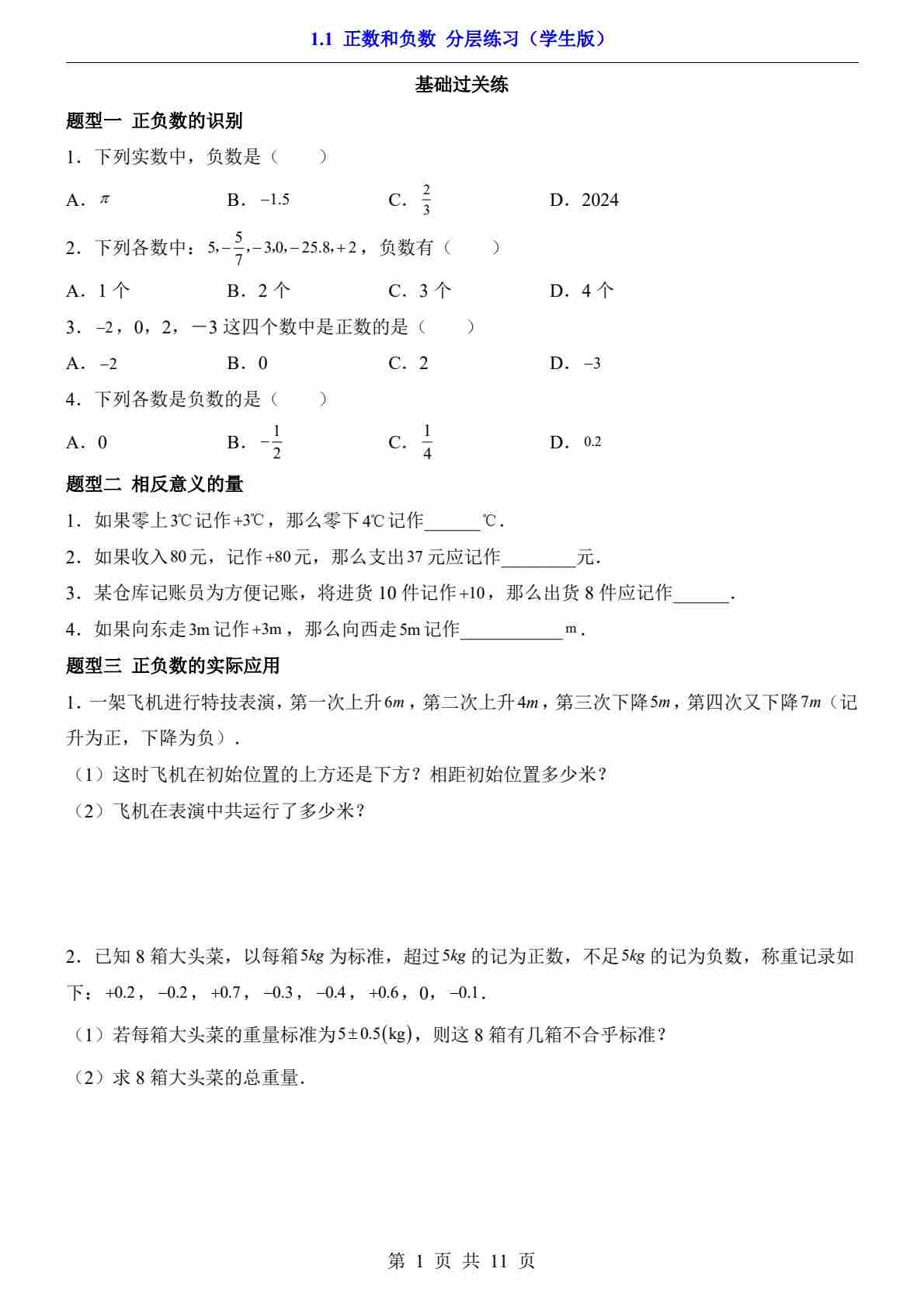 1.1 正数和负数(分层练习)99
