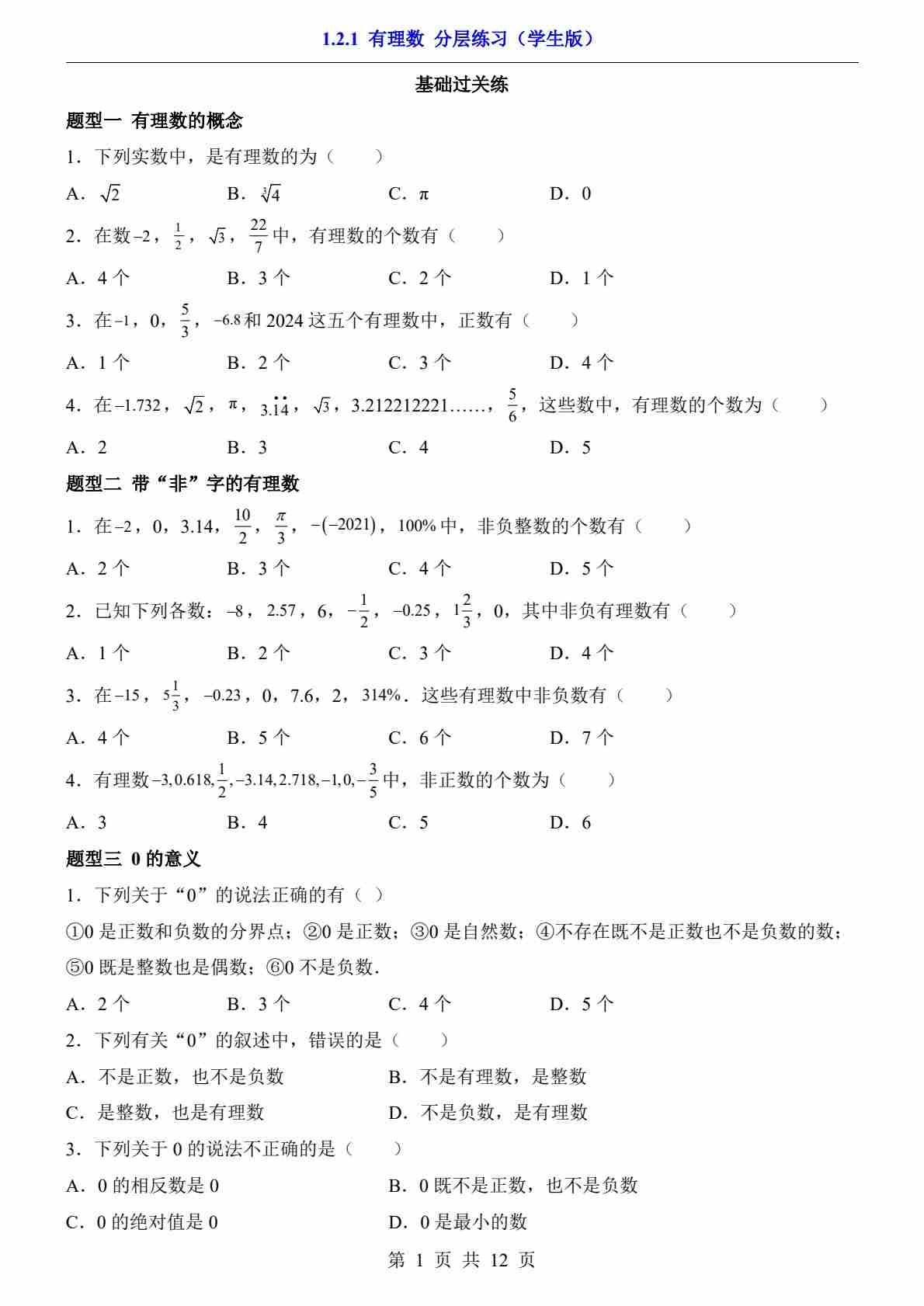 1.2.1 有理数(分层练习)
